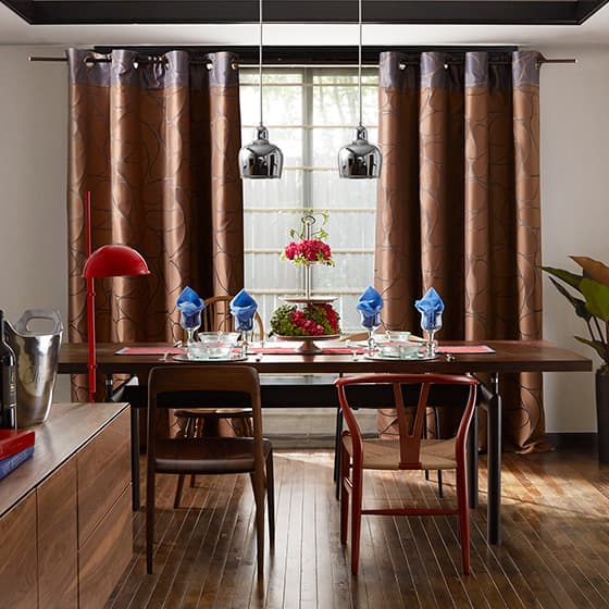イタリア、ドイツ、スイス、オランダなど、世界各国から直輸入したオリジナルファブリックや国内の有名メーカー品を中心に、さまざまなカーテンを取揃えています。