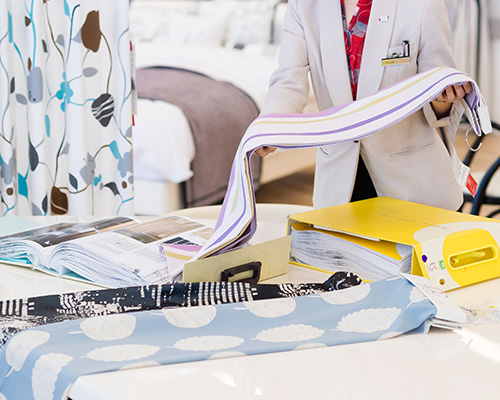 家具の知識に加え、カーテンに関する高い専門知識を持った、カーテン専門スタッフによるコンサルティングサービスをご利用いただけます。