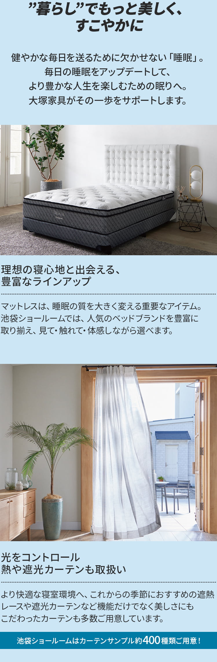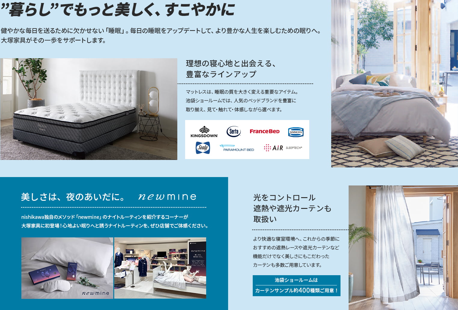 - 国内外有名ブランドの寝具&ベッドから、あなただけの最高の眠りをサポートします。