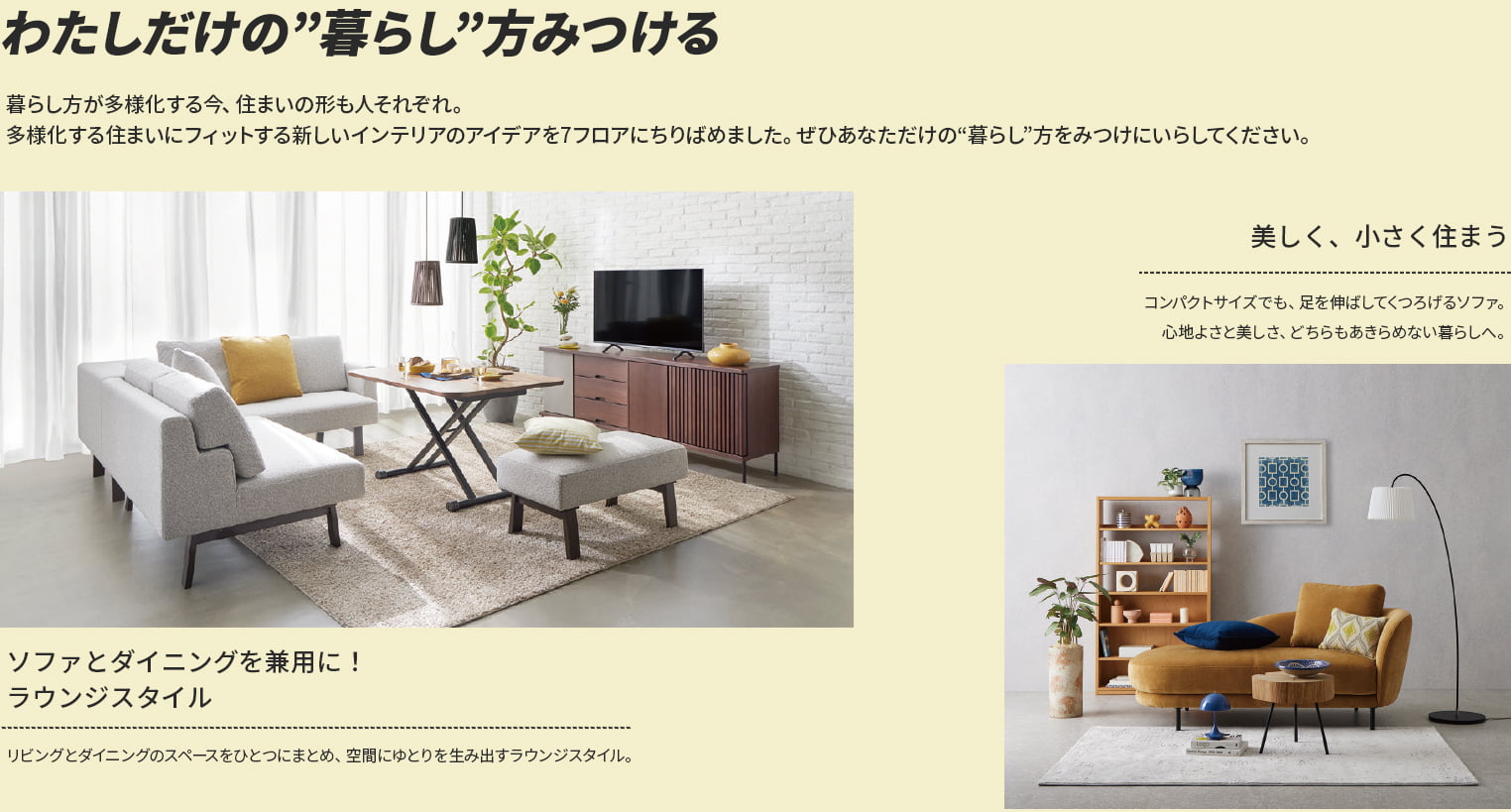 イタリアやドイツをはじめ、欧米を代表する人気ブランドの洗練されたインテリアからコストパフォーマンス&デザインに優れたIDC OTSUKAオリジナル家具まで。憧れの暮らしを叶えるインテリアが揃う専門フロアです。