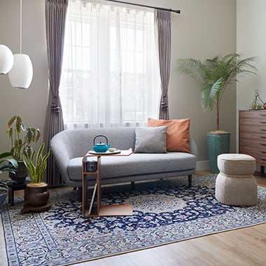 「newmine」のナイトルーティンをまるごと体感できるのは、池袋ショールームならでは。毎日のセルフケア時間を、より豊かで特別なものに変えるヒントが詰まっています。その他、ファブリックが織りなす魔法!国内外から集めたさまざまなカーテンや敷物もお楽しみいただけます。