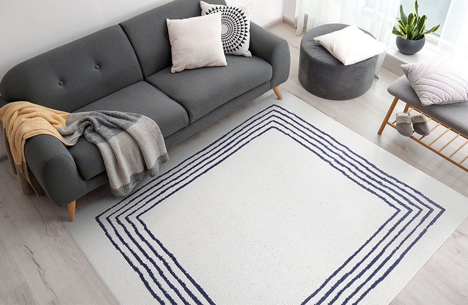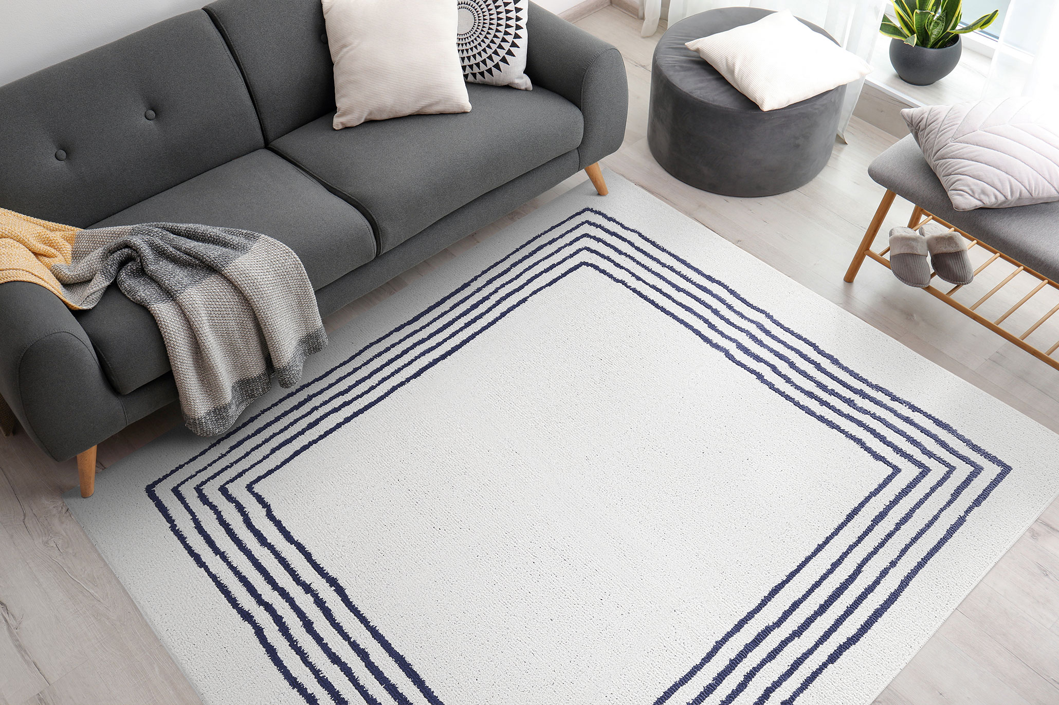清涼感のある白と爽やかなネイビーが、マリンムードを盛り上げるウォッシャブル涼感ラグ。表面に加工されたキシリトールとミントの効果で、触れるとひんやり心地よく暑い季節も快適。