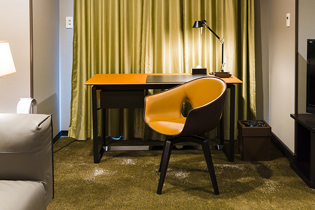 ジャン・マリー・マソーやロベルト・ラッツオーニが手掛ける洗練されたデザインはもとより、エグゼクティブを魅了し続ける世界的にも名高い「ペレ・フラウ」とよばれる比類のないしなやかさを持つ革や、イタリアのアルティジャーノ(職人)の技を駆使して生まれたインテリアの世界観を、「ロイヤルパークホテル ザ 汐留」ならではの高層階からの眺望とともに楽しめる一室をご用意いたしました。
