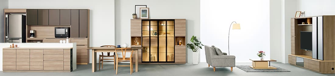 収納力だけでなく、機能性、デザイン性の高さも魅力的なモダンスタイルなセミオーダー収納家具「アリシア」。