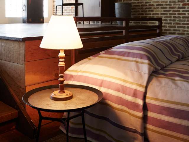 ナイトテーブルの高さは、マットレスに合わせるとスッキリ。