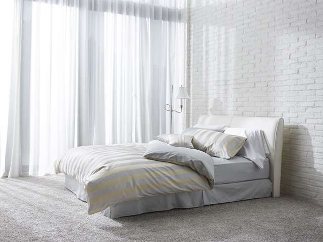 カバーは、洗い替え用を含めて2タイプご用意して。1つは黄色×グレーのやさしいぐっすりカラーを使ったもの。もう1つは、やや濃いめのグレーを使った、落ち着いた色づかいのもの。このカバーのシリーズは、リバーシブルになっていて、表と裏で雰囲気を変えることができるんです。お客さまにも、寝室をトータルコーディネートしたモダンな雰囲気を気に入っていただけて、うれしかったですね。
