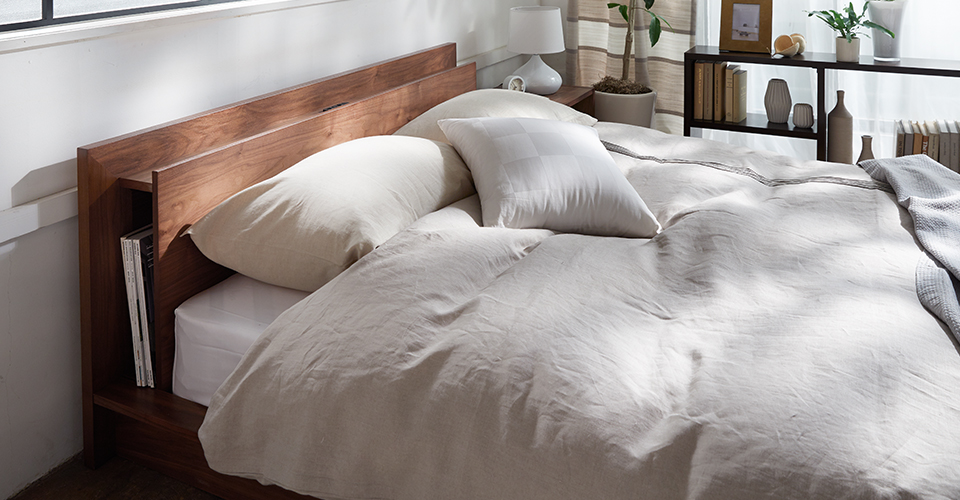 ヘッドボードとは、頭上にある長い板のこと。ベッドフレームによって、ヘッドボードについている機能は異なります。ライフスタイルを考慮して、こだわってみるのも一つの選び方です。