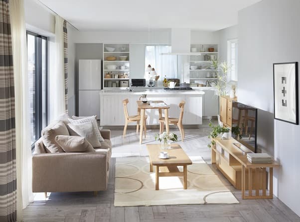 一緒に過ごす時間が長くなる分、ライフスタイルに合わせたレイアウトをつくることで、ストレスフリーな生活を実現することができます。また、間取りに合わせたインテリアを組み合わせて、作業スペースを確保するなど目的に合わせて活用することも可能に。