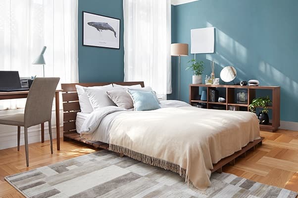 背の低いロータイプのベッドや収納家具を配置することで、目線の高さが低くなり、天井が高く感じられるため、部屋を広く見せることができます。また、狭い部屋に大きめのベッドを置いても圧迫感が軽減されるので、スッキリとした印象を与えることが可能です。