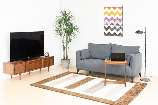 コンパクトタイプのソファを選ぶと、スペースをとらず、スッキリとしたリビングスペースになります。