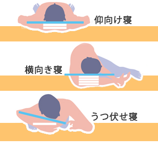 横向きの場合は、肩と骨盤に重力がかかるので、横向きになった時に肩が圧迫されていないか、などの確認もしておきましょう。