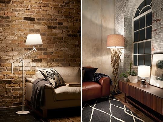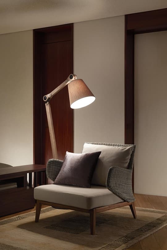 照明の高さで印象が変わり、背の高いタイプなら部屋全体に柔らかく明るい光を届け、背の低いタイプでは床付近をほんのり照らして落ち着いた雰囲気になります。リラックスタイムのリビングや、玄関のアクセント、ソファの横において読書灯にしたり、デザインも豊富なのでお好みのスタイルでコーディネートが叶います。