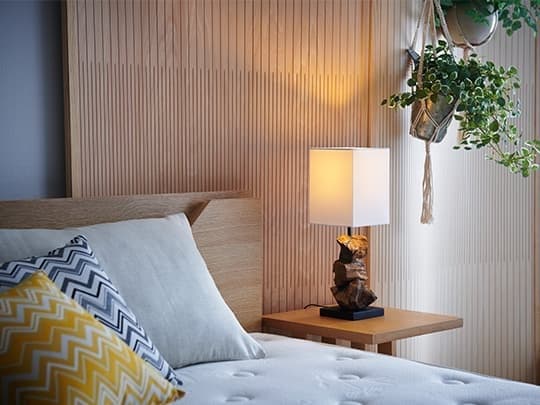 やわらかい光の間接照明を使うと精神的に落ち着き、リラックスしやすくなります。また、オレンジがかった暖色系の光を夕方に使うことで、身体が浴びる太陽光の明るさに合わせた光の量を調整できるため、生体リズムが整えやすくなるメリットも。