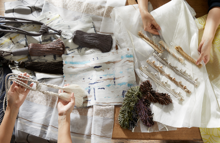 イタリア、ドイツ、スイス、オランダなど、世界各国から取り寄せた上質な輸入生地をはじめ、品質にこだわったオリジナルファブリックや国内有名メーカー品を多彩にご用意。トリムやタッセルなどオーダーカーテンを彩るアクセサリー小物も充実の品揃えです。