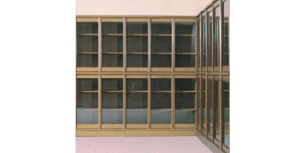 同じモジュールの扉の連続が、ベーシックな中にもシンプルで美しいデザインを生み出しました。役員室の壁面やワンランク上の書庫などに最適の書棚です。