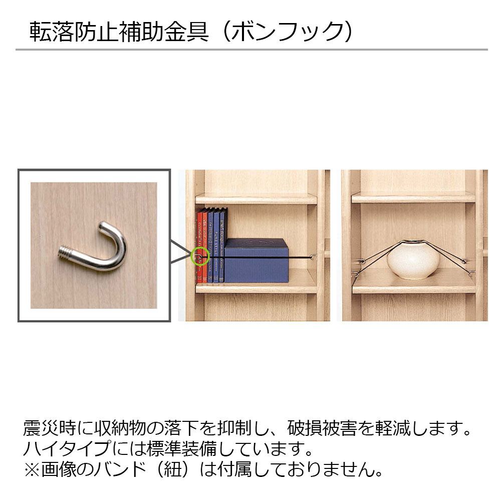 震災時に収納物の落下を抑制し、破損被害を軽減する転倒防止補助金具です。※画像のバンド(紐)は付属しておりません。