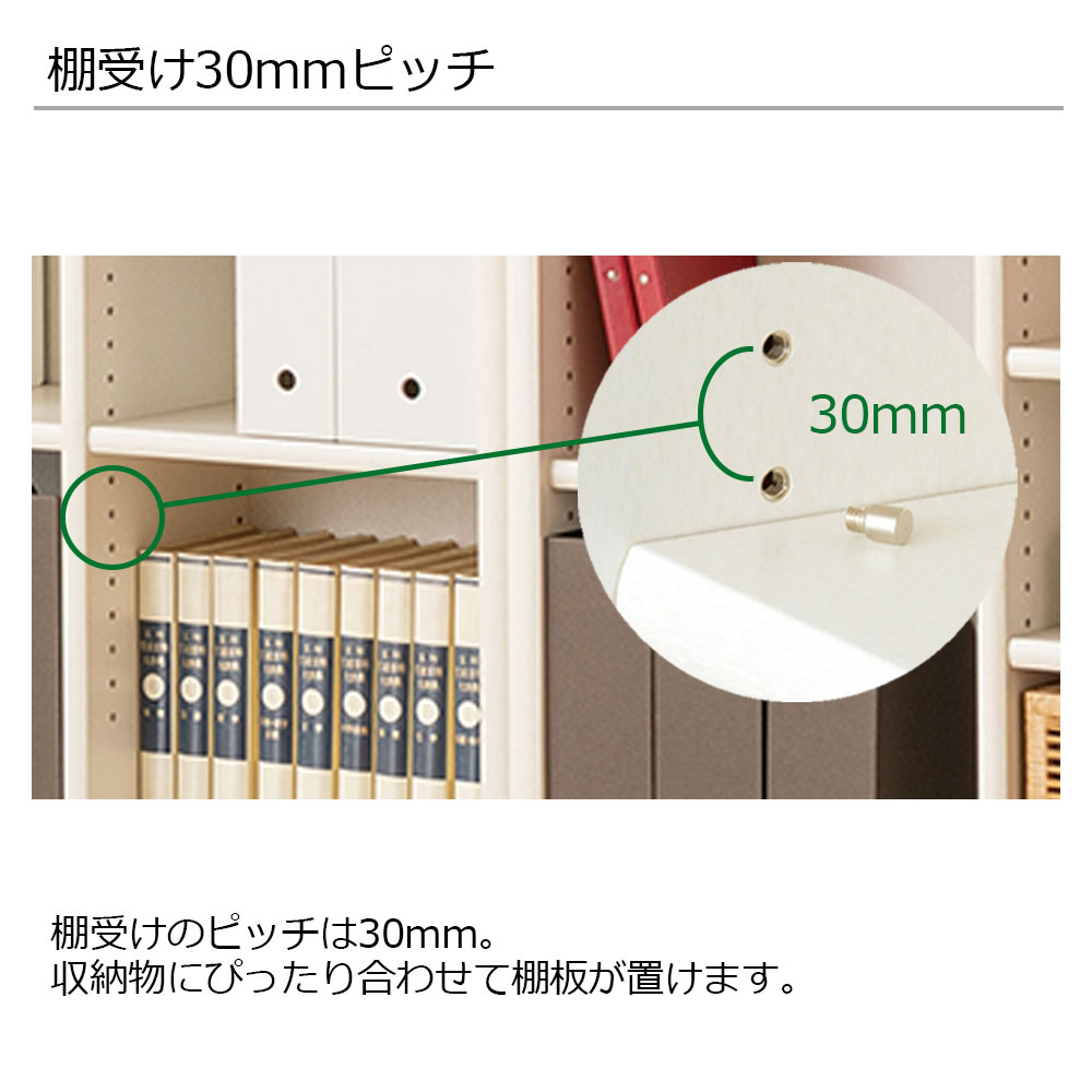 可動棚を30mm単位で細かく調整できるので、収納アイテムの高さに合わせて棚板が置けます。A4ファイルは2段収納可能です。※画像はイメージです。
