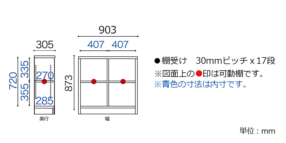 厚さ24mmの可動棚はMDFで、中がしっかりつまったベタ芯構造。抜群の耐荷重で安心して収納できます。