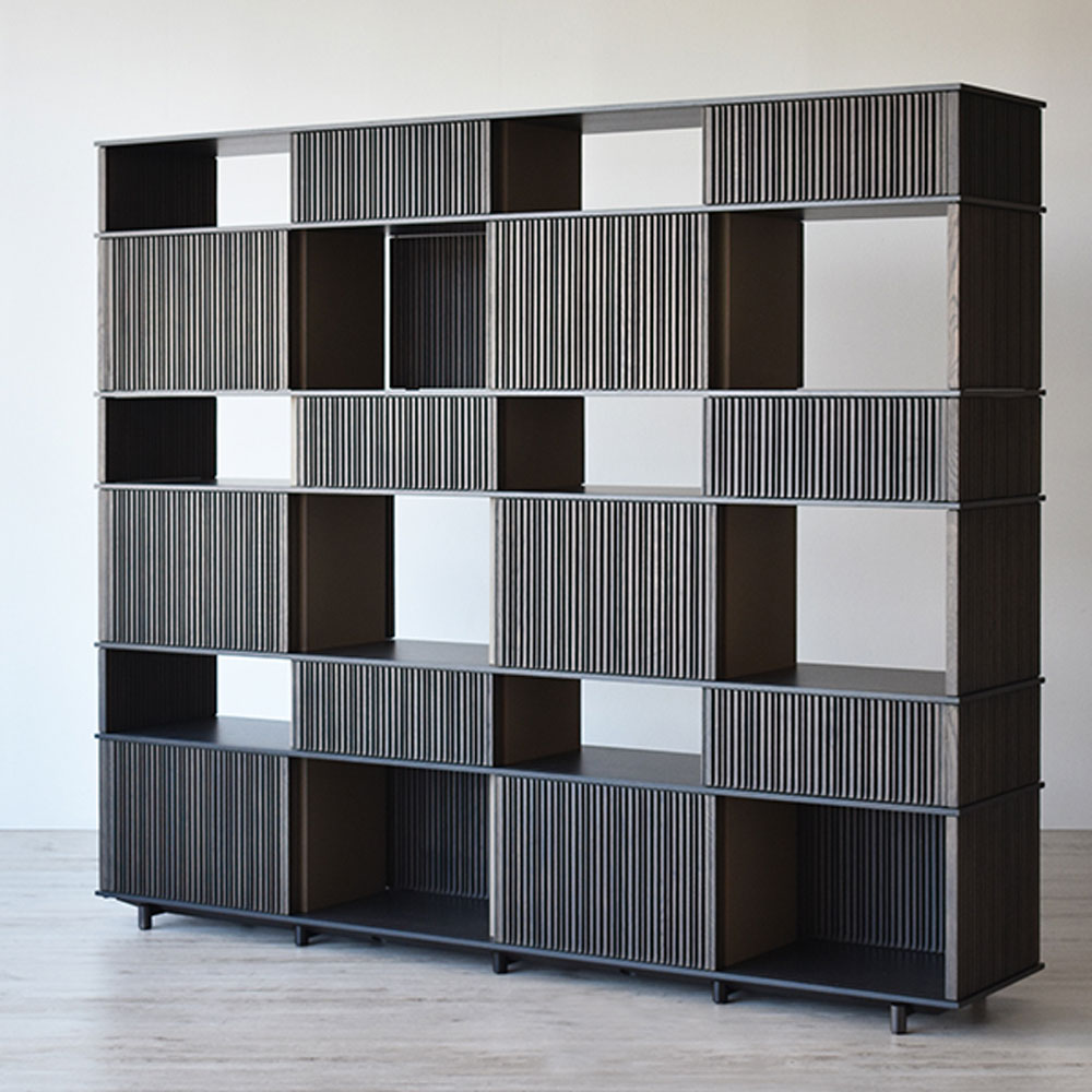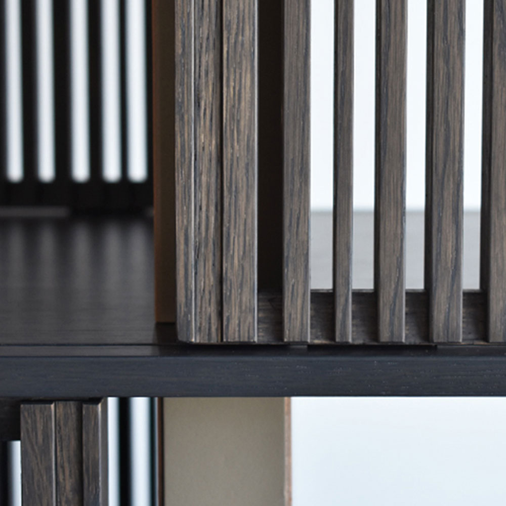 格子扉をお好みで移動できるので、収納するものにあわせて印象を変えることができます。