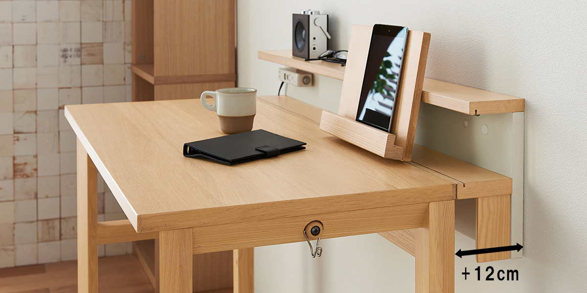 デスク天板にセットすることで、拡張天板としてご使用いただけます。