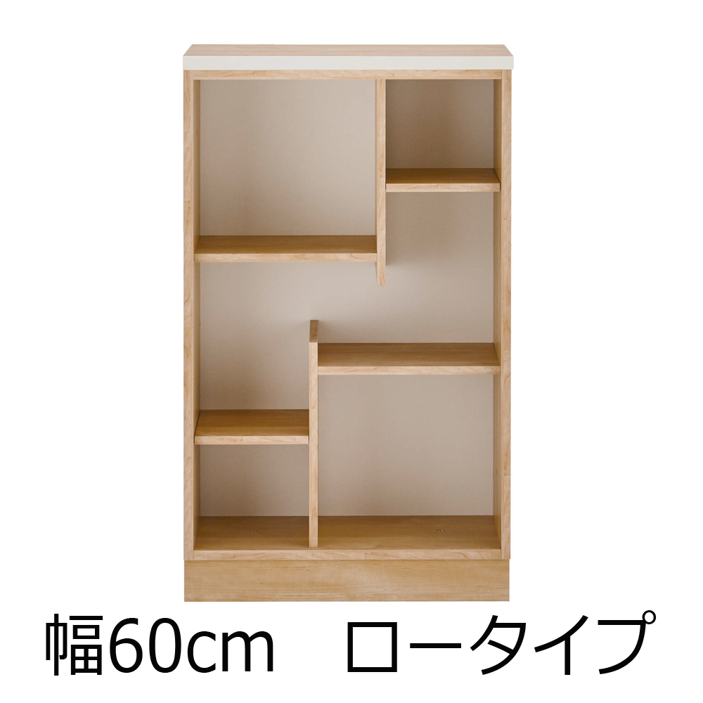 幅60cm ロータイプ:固定棚板x2、可動棚板x2