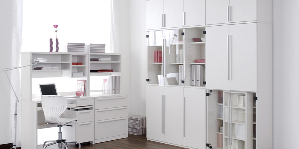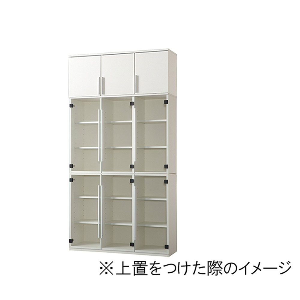 Com-1シリーズの書棚「C1B-120H」専用上置きです。棚板はすべて可動棚で、棚板の高さ調整が可能です。板扉付きでほこりの侵入も防げます。