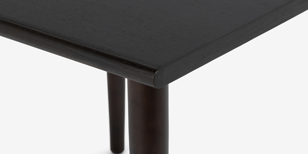 天板の2辺は側面になめらかで丸みのある無垢材を使用しており、椅子の出し入れなどによる傷も目立ちにくい仕様となっています。