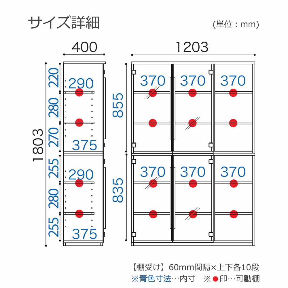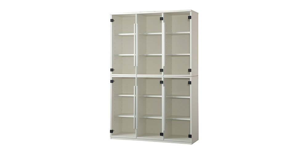 棚板はすべて可動棚で、棚板の高さ調整が可能なシンプルなデザインの書棚です。ほこりの侵入も防ぎながら、扉を開けなくても中のものを確認できる、使い勝手のよいガラス扉付きです。