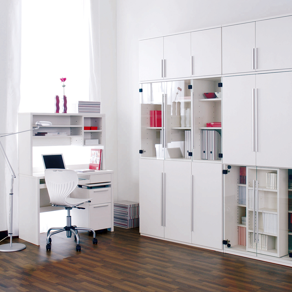 Com-1シリーズの書棚「C1B-80H / C1B-80S」専用上置きです。棚板はすべて可動棚で、棚板の高さ調整が可能です。板扉付きでほこりの侵入も防げます。