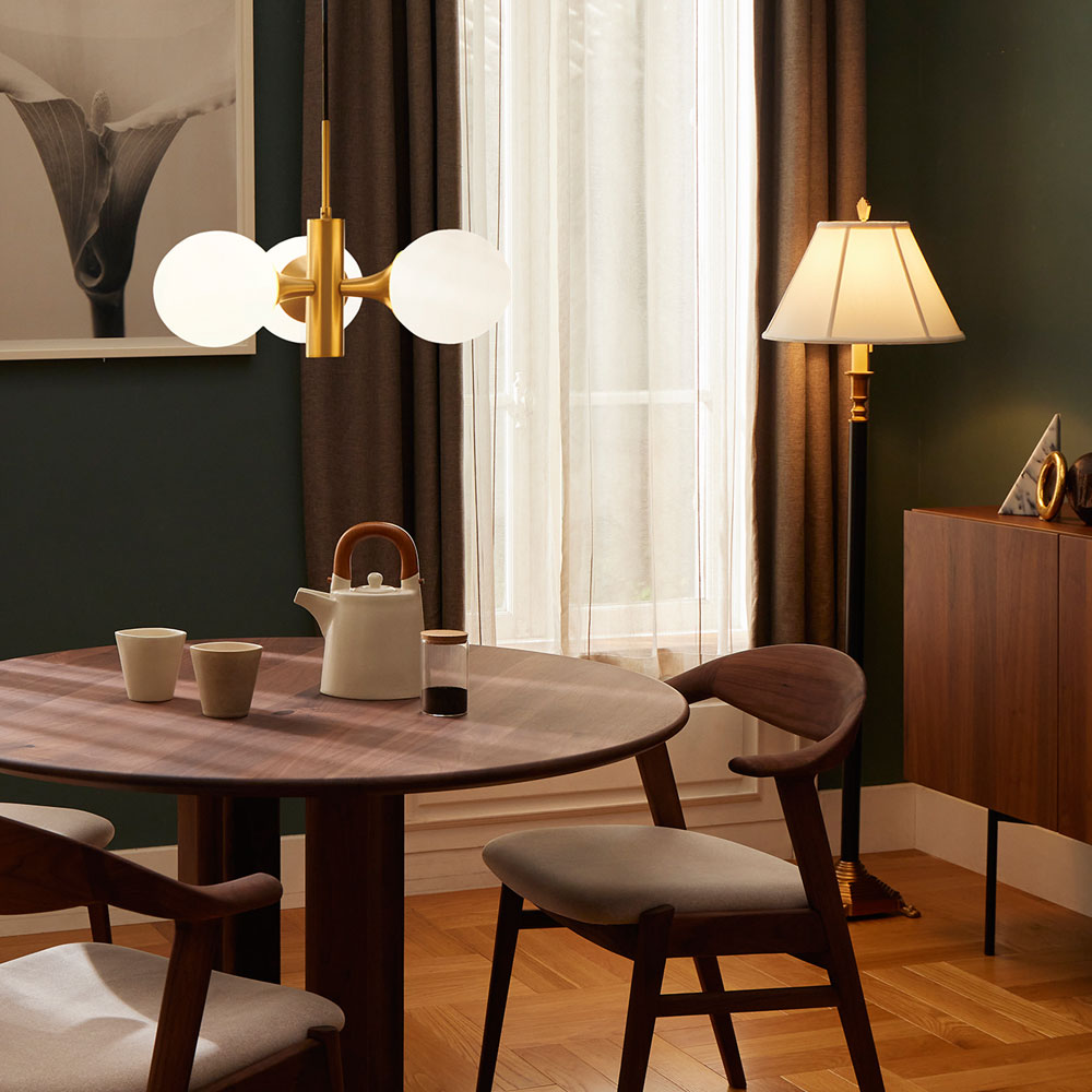 フレームの素材には人気の高い真鍮を使用しています。リズミカルな球体のシェードから広がる光が空間をやさしく包み込みます。コンテンポラリーからシンプルな北欧スタイルまで幅広いテイストに合わせることができます。※画像はイメージです。