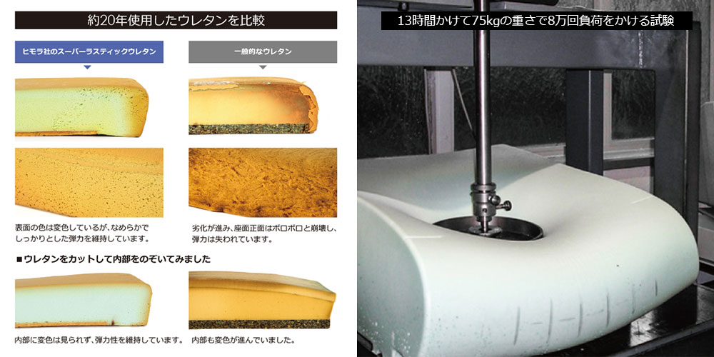 himolla(ヒモラ)のすべてのモデルには自社製造のモールドウレタン「スーパーラスティック」が使われています。DGM(ドイツ工業規格)をクリアしており、座り心地のよさと耐久性の高さが魅力です。
