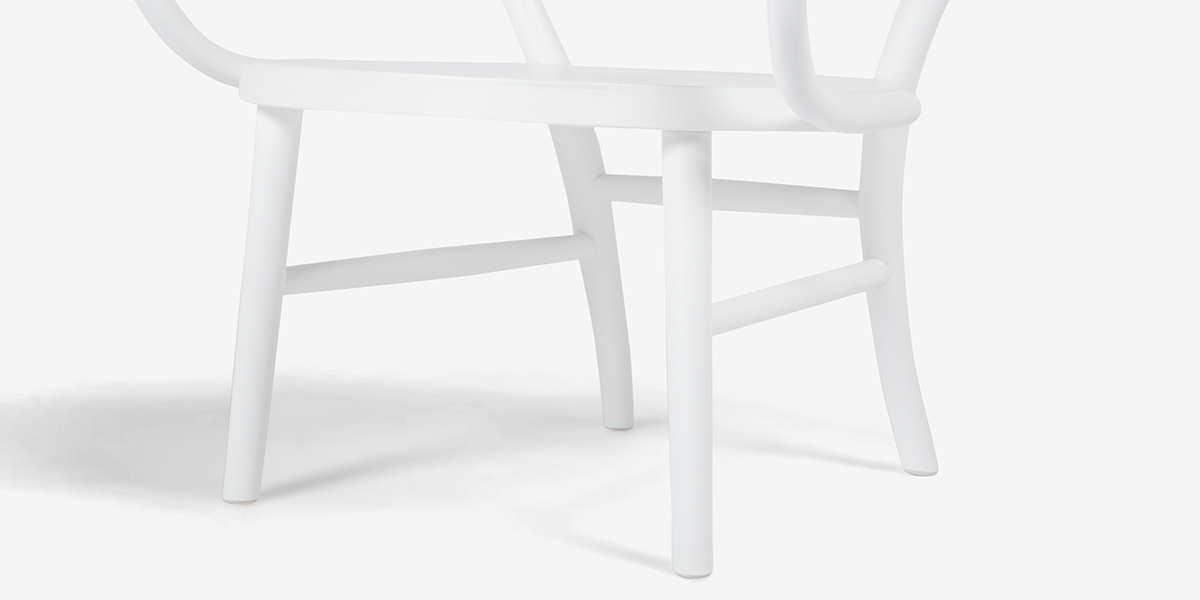 大きく曲線を描いた背もたれと肘かけは、決して機械化で作ることはできません。熟練した職人たちの手仕事によって生み出されます。