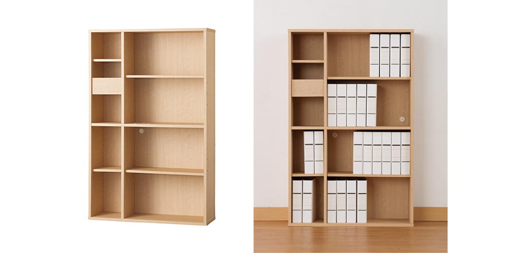 シェルフにはA4ファイルを4段収納することができます。