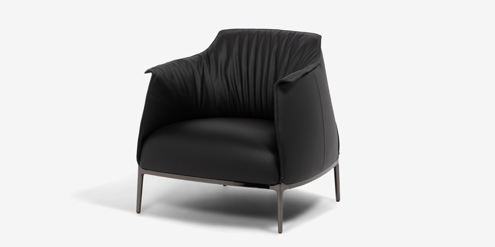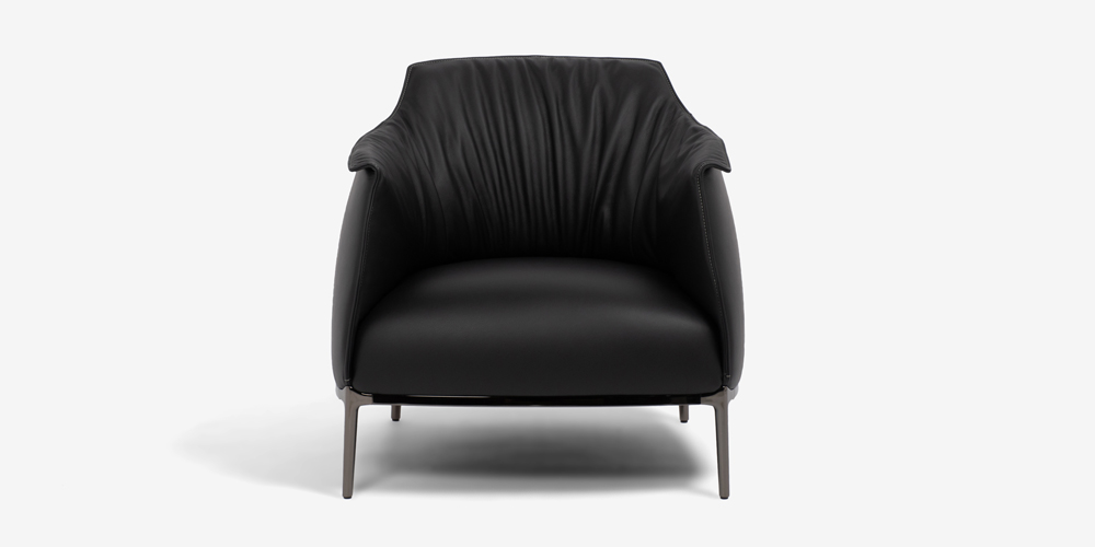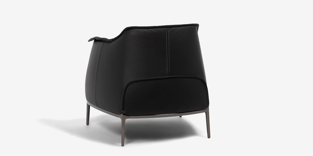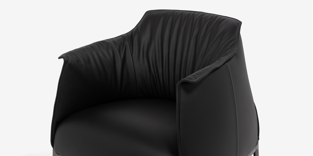 背もたれのレザーは自然な縦プリーツを生み出すように張られ、心地よい動きを演出します。