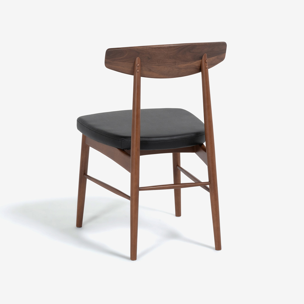 テーブルと合わせた際に、最も目の行く背もたれの部分はウォールナット材を使用し、天然木の質感を感じられる仕上げです。