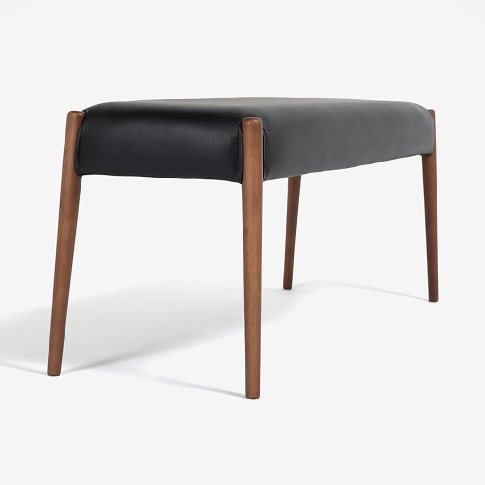 ベンチは複数で座ることができ、ご家族の食卓や来客時にもおすすめです。スリムな丸脚ですっきりとした印象です。※合わせるテーブルの脚間サイズをご確認ください。