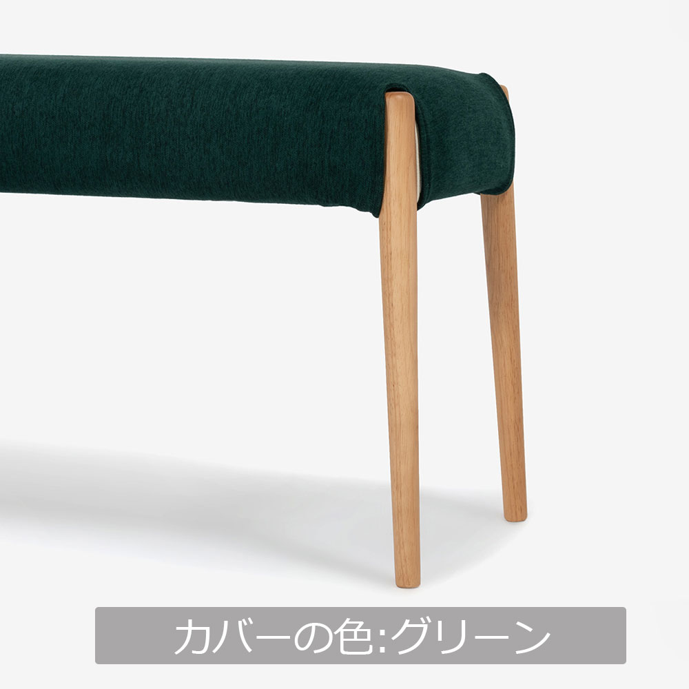 ファブリックカバーを変えることでガラッと雰囲気をかえることができます。季節やダイニングのインテリアに合わせて、コーディネートをおたのしみいただけます。カバーのみ追加でのご注文も承っております。※画像のテーブルは幅135cmタイプ、ベンチ幅110cmタイプ、カバーはグリーンです。