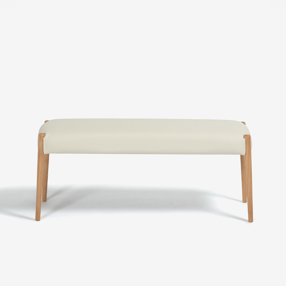 ベンチ「ユノ3A」幅102cm ホワイトオーク色 座面PVCアイボリー 布カバー全9色
