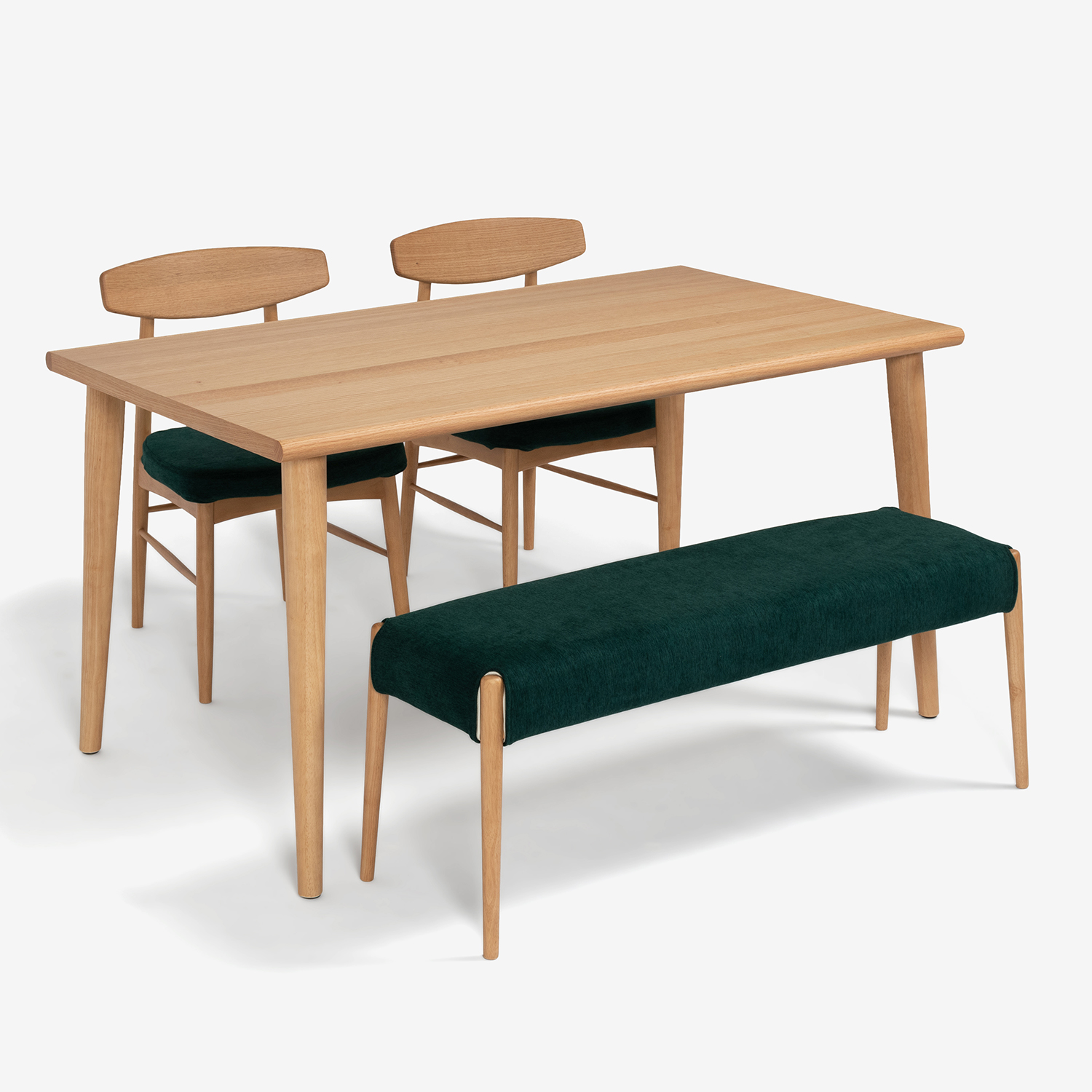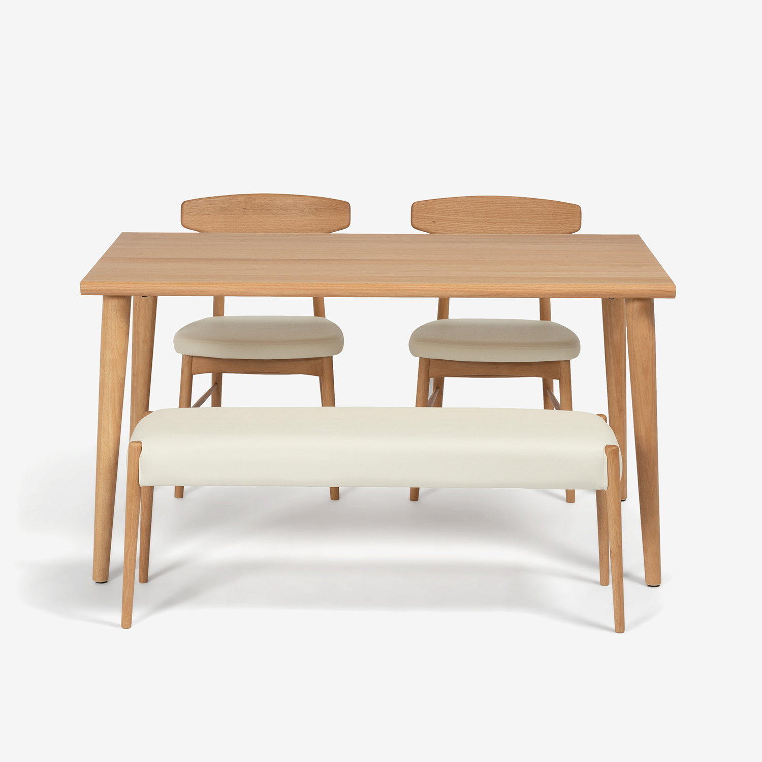 ベンチは複数で座ることができ、ご家族の食卓や来客時にもおすすめです。幅102cmタイプはユノシリーズの幅120cmテーブルの脚間にも収まるコンパクトなサイズです。※他のダイニングテーブルと合わせる場合はテーブルの脚間サイズをご確認ください。
