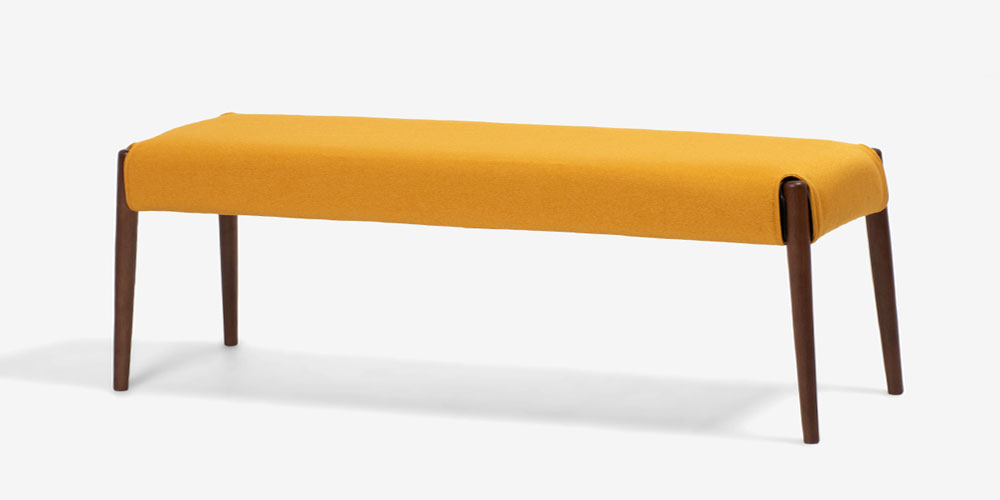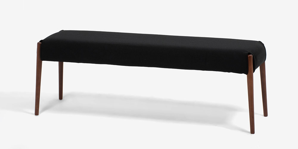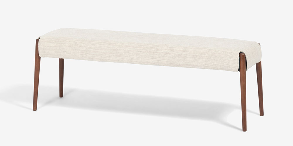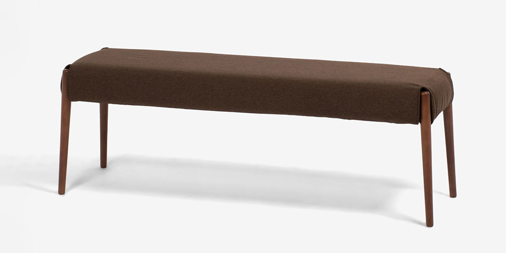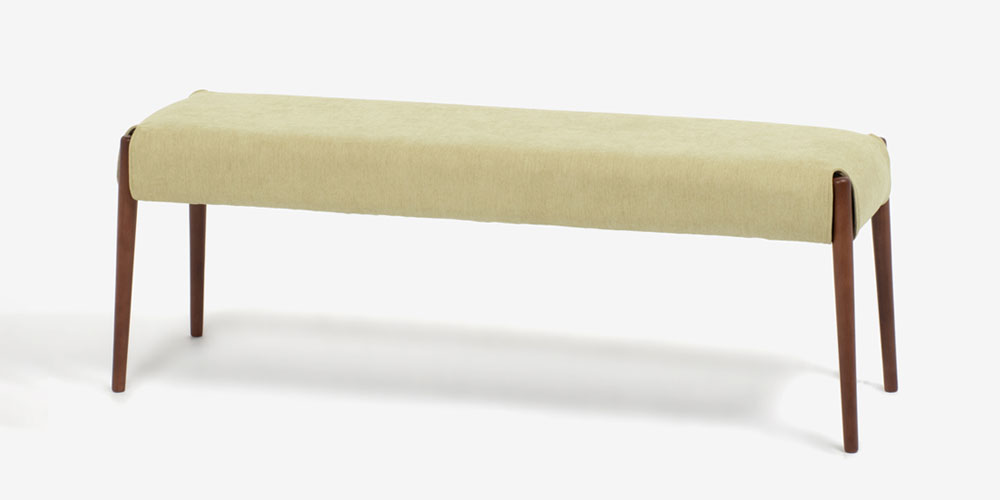 丸みがあり、優しい印象のダイニングシリーズ「ユノ」のベンチです。脚部はウォールナットをイメージしたあたたかみのあるブラウンカラーです。