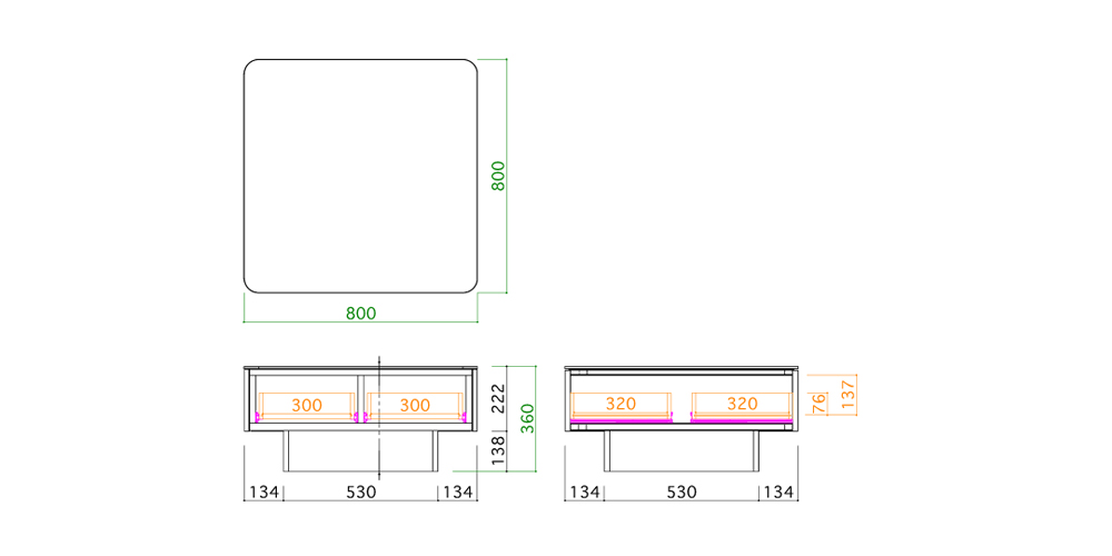 天板は8mm厚の黒シルク印刷入りの透明ガラスになります。