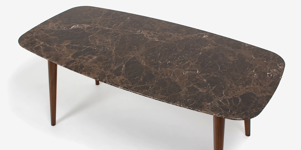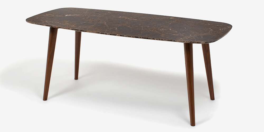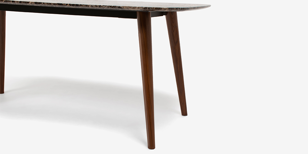 大理石天板(エンペラドール)Xウォールナット色木脚の異素材を組み合わせたデザイン。ウォールナットのチェアとも合わせやすいく、幅ひろいダイニングコーディネートをお楽しみいただけます。