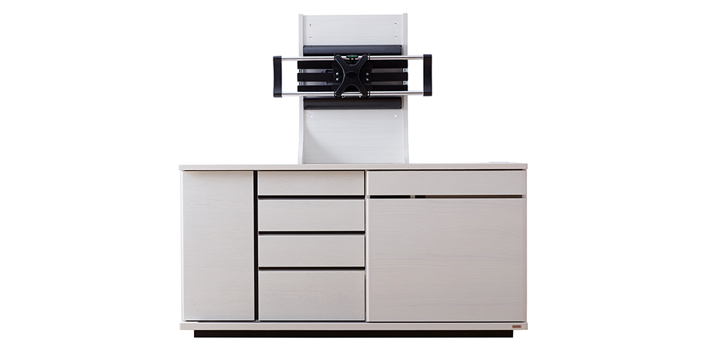 サイドボード「ストレージ」は壁掛けパネルと壁掛けムービングアームをお求めいただく事でテレビを壁掛けで設置することができます。充実した収納も確保でき、リビングはもちろん、寝室にもおすすめです。