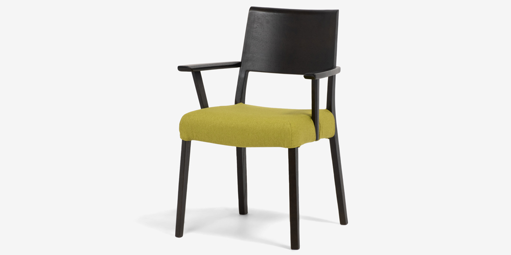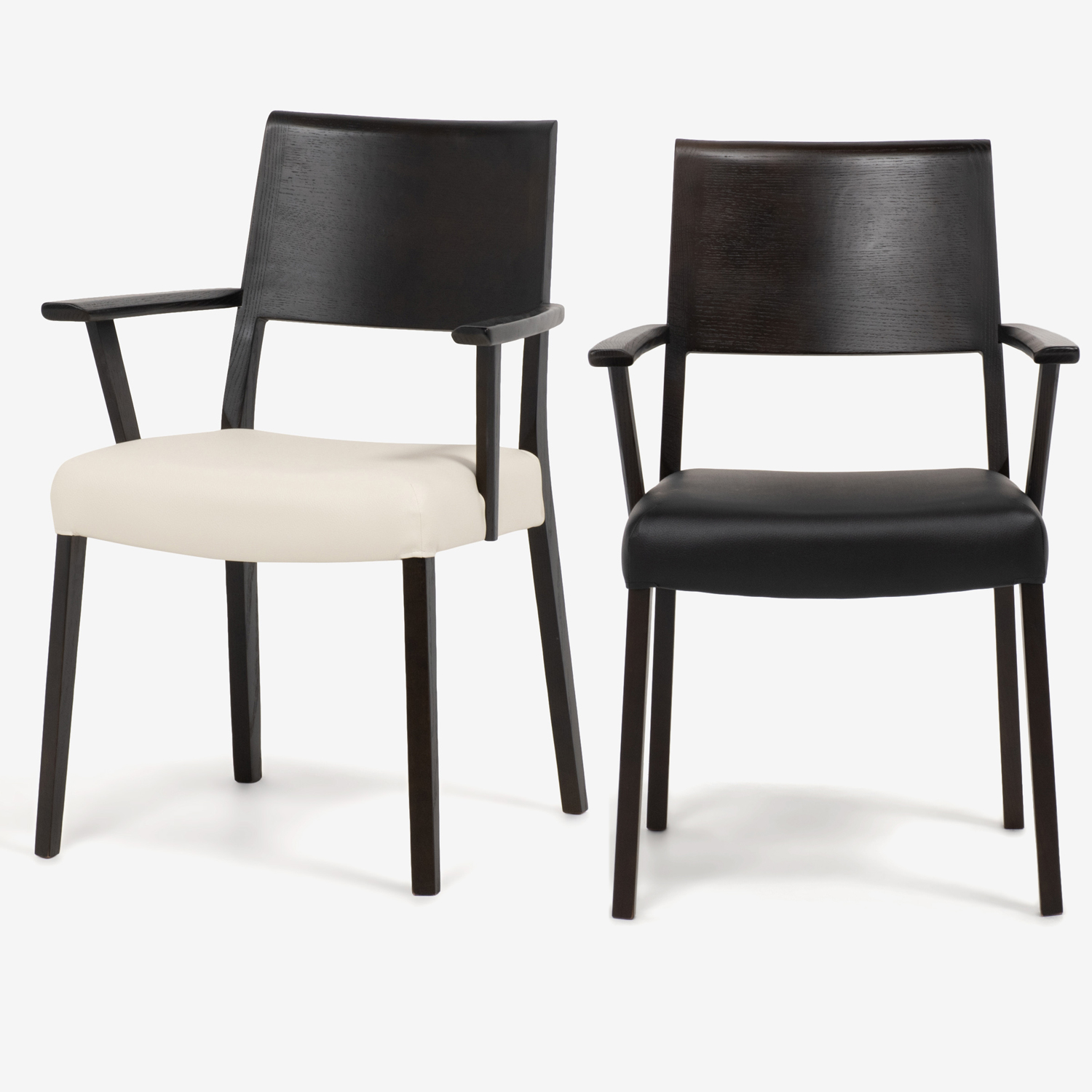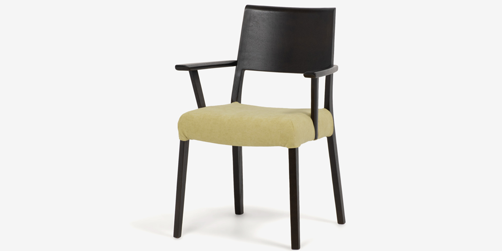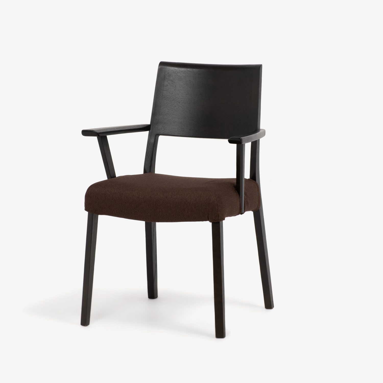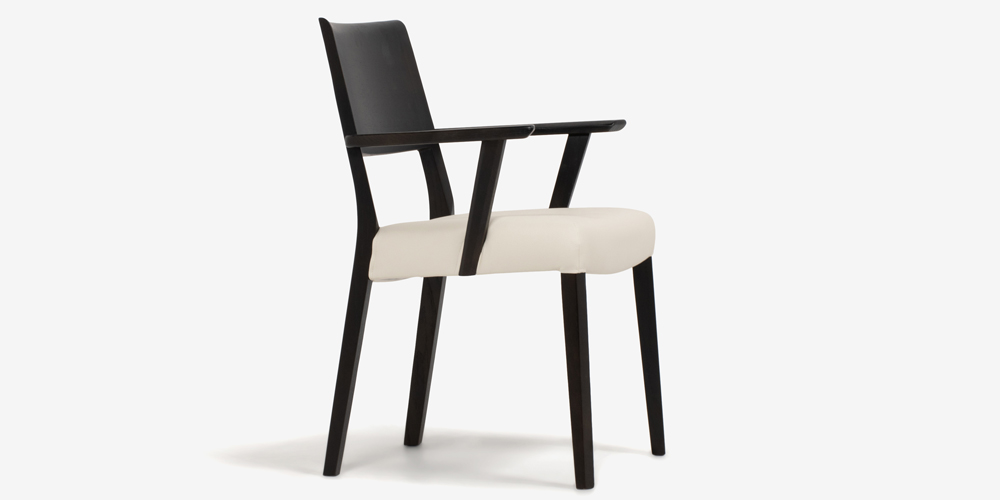 ダイニングチェア(肘付き)「シネマ Bタイプ」レッドオーク材 ダークブラウン色 座面PVC