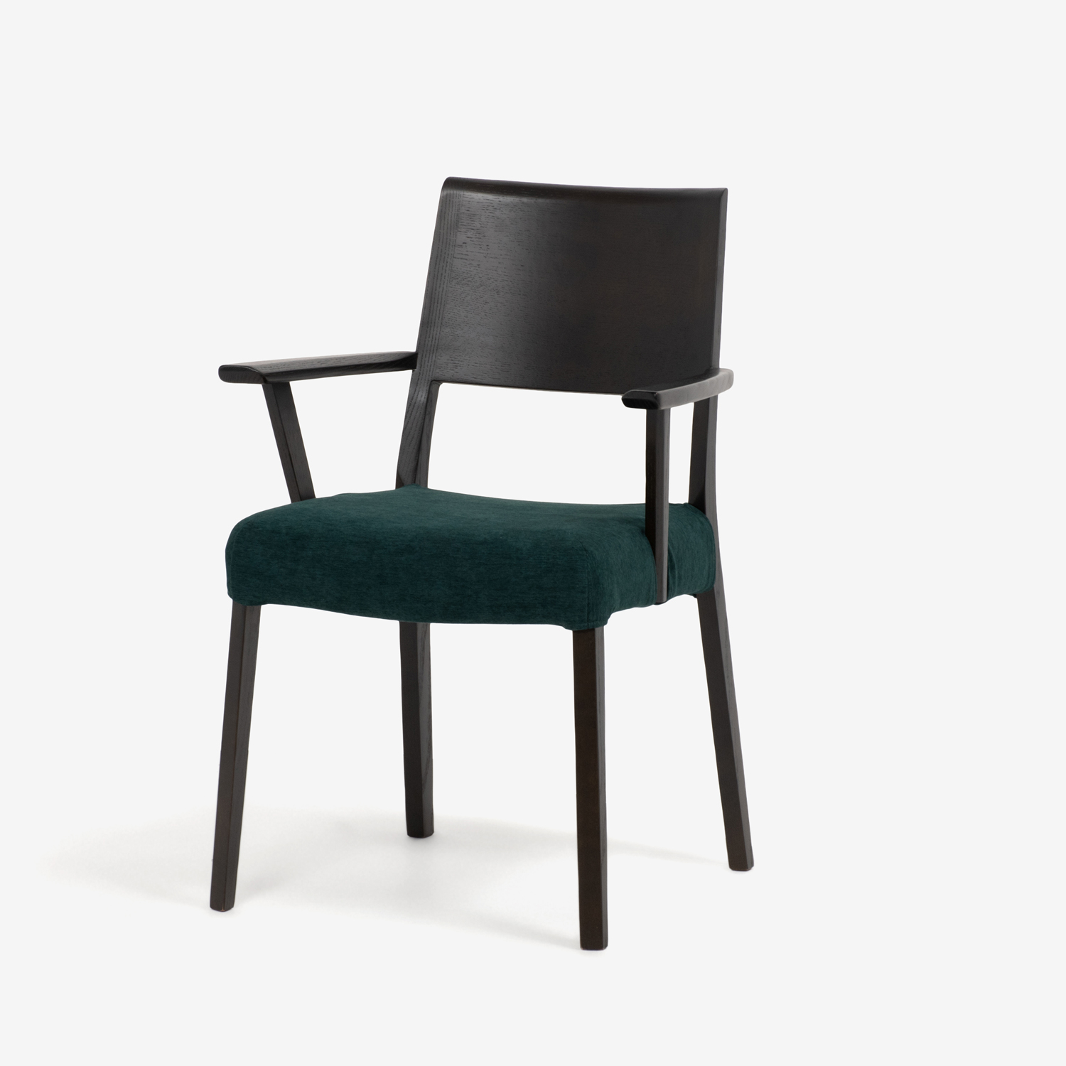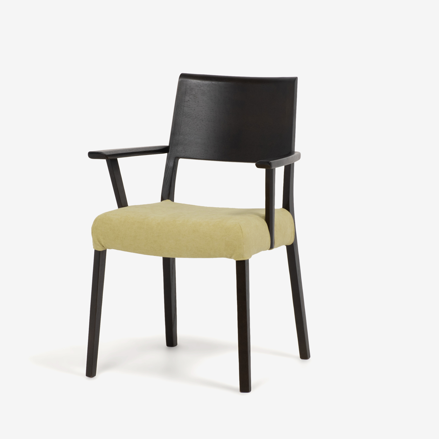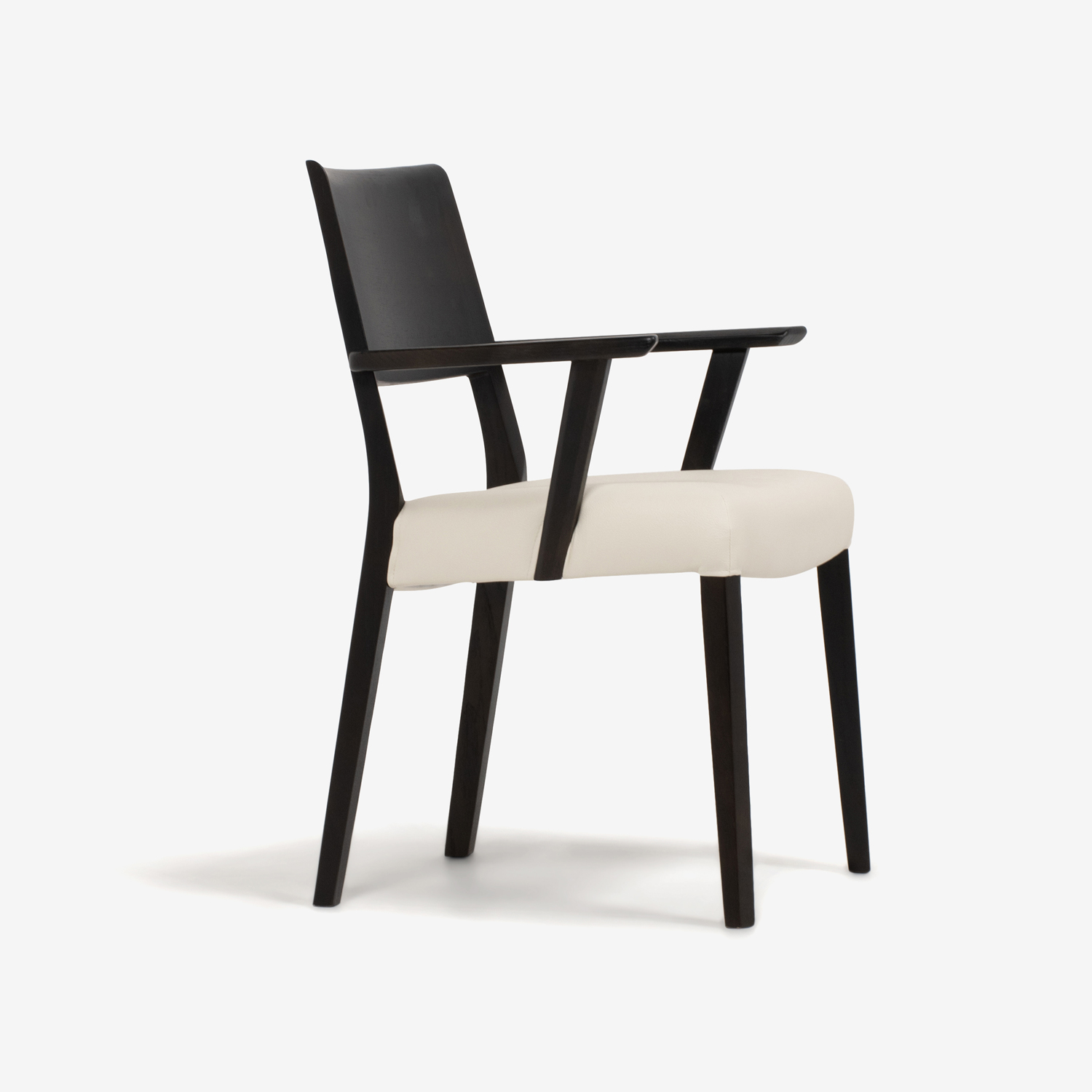 ダイニングチェア(肘付き)「シネマ Bタイプ」レッドオーク材 ダークブラウン色 座面PVC