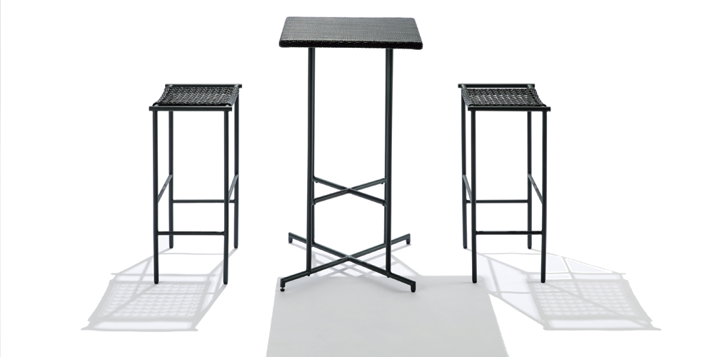変色しにくく、腐食しにくい人工ラタンをあしらい編み込んだデザインは、普通のアウトドア家具ではなかなか見られない特長です。