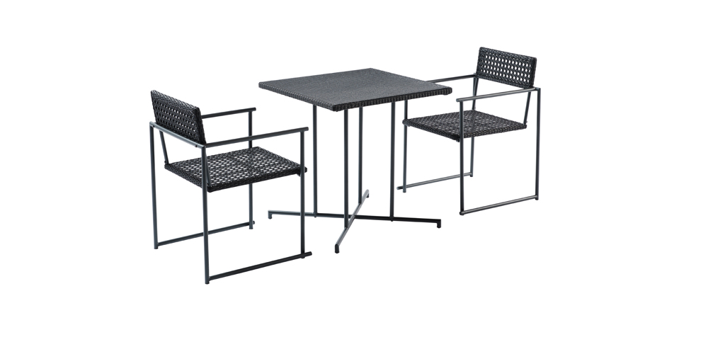 変色しにくく、腐食しにくい人工ラタンをあしらい編み込んだデザインは、普通のアウトドア家具ではなかなか見られない特長です。