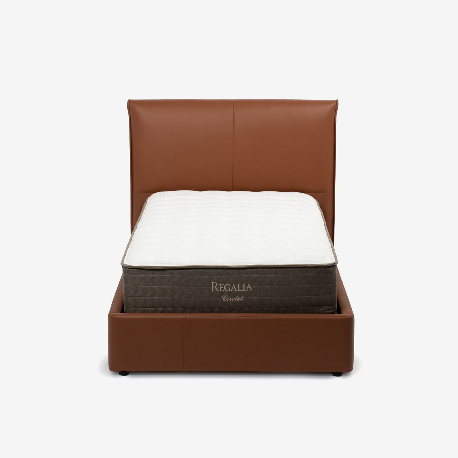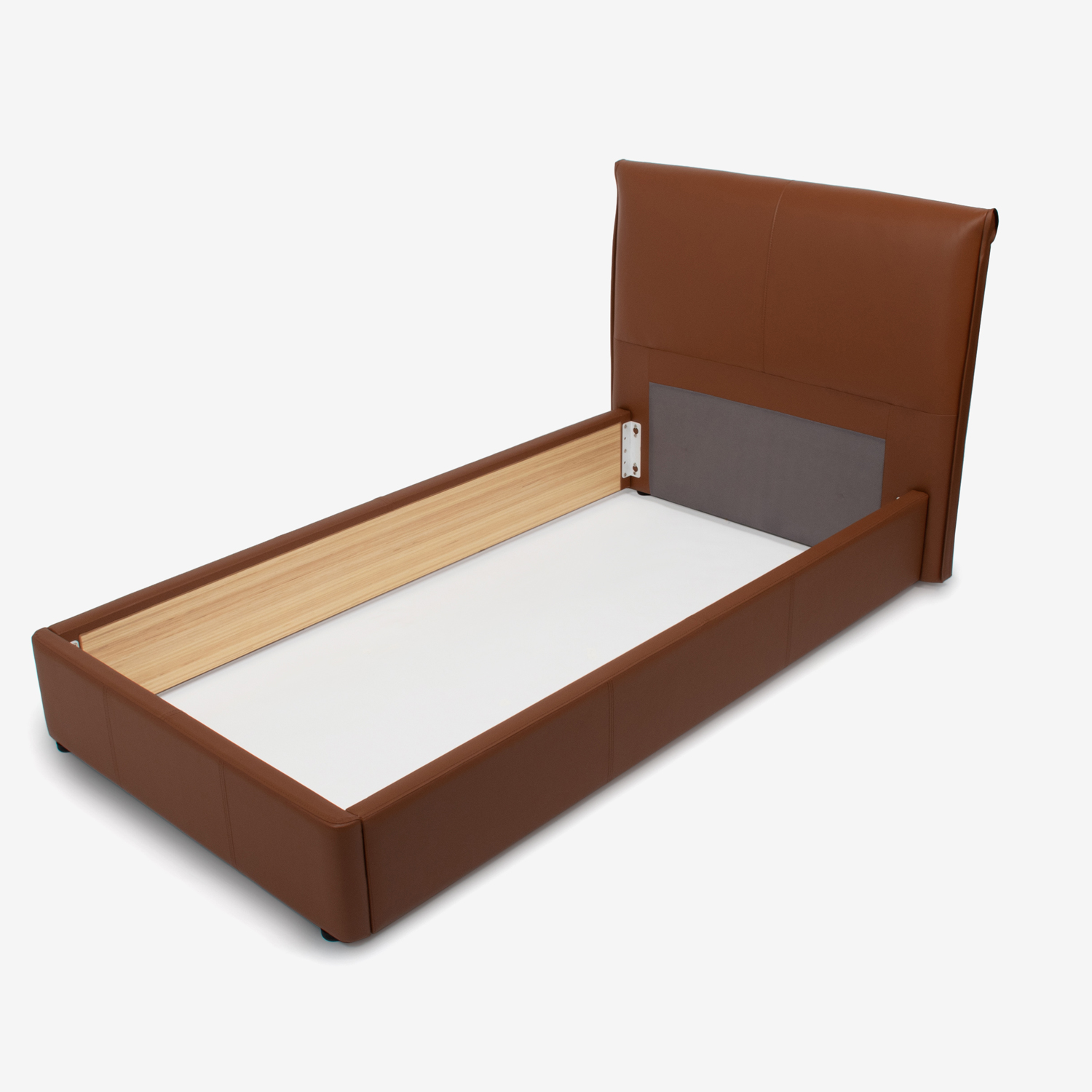 ベッドフレーム「モルト」半革張り ブラウン色 ※ボトムクッション落し込みタイプ