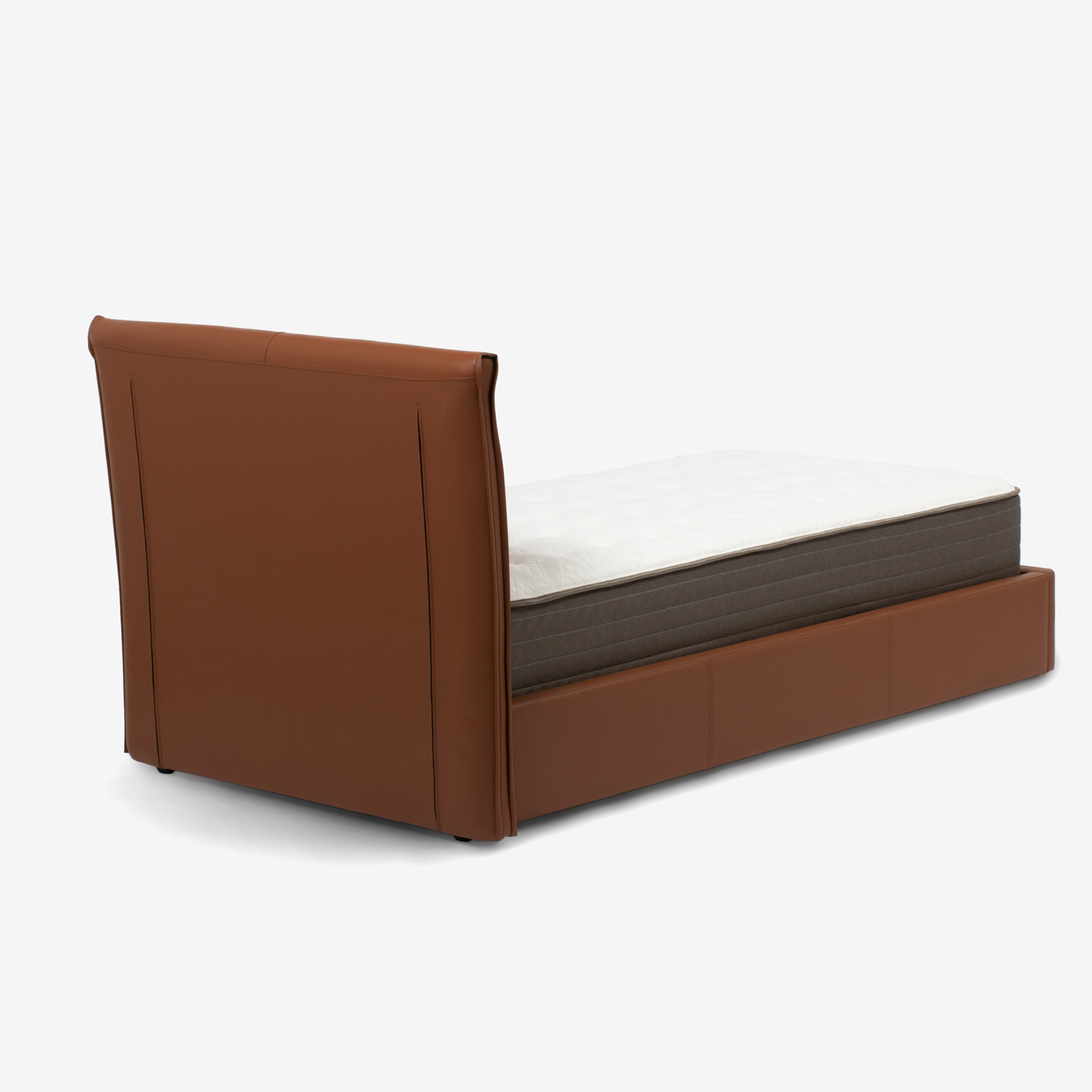本革を使用したヘッドボードにステッチのラインを施すことでシンプルながらデザイン性と質感の高さが魅力です。※マットレスとボトムクッションは別売です。