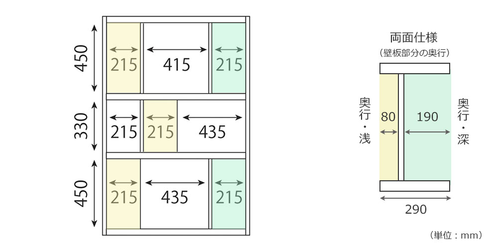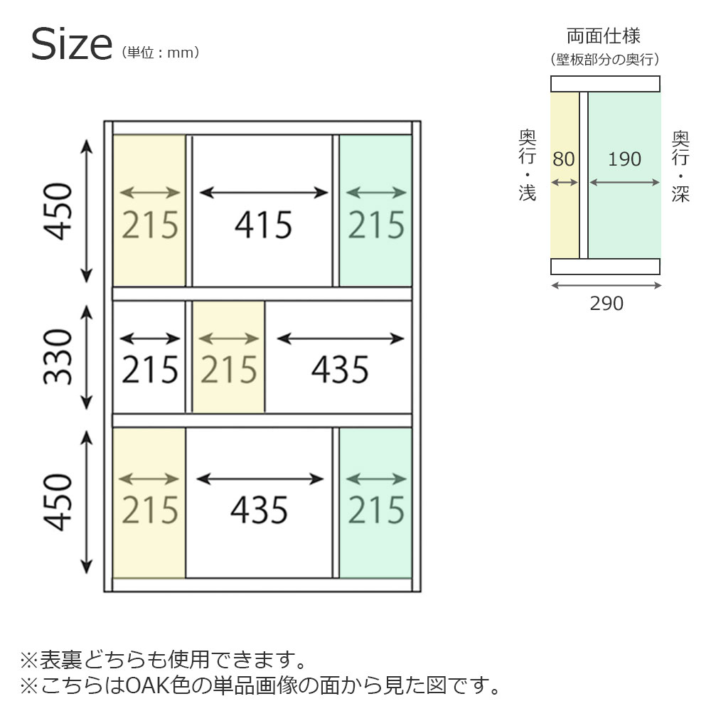 ※表裏どちらも使用できます。こちらは単品画像と同じ面から見た図です。壁板部は奥行きが表裏で異なります。